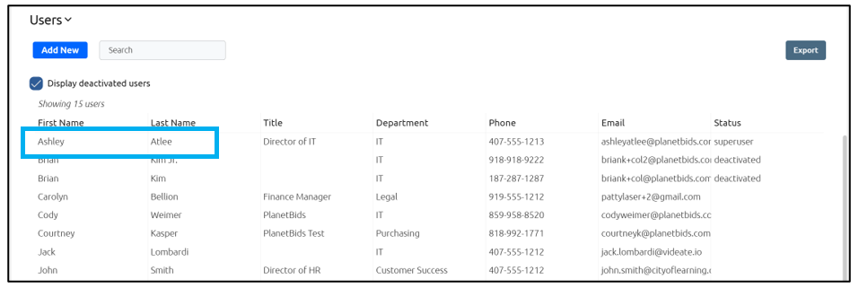 Click the name of the user you wish to apply the permissions to: