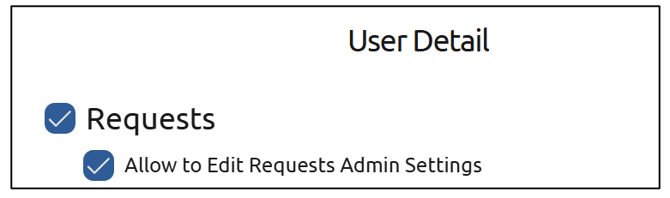 You will see several options to choose from. Select which option(s) you would like this user to have. Allow to Edit Requests Admin Settings will allow the user to configure the options of the standard Request form: