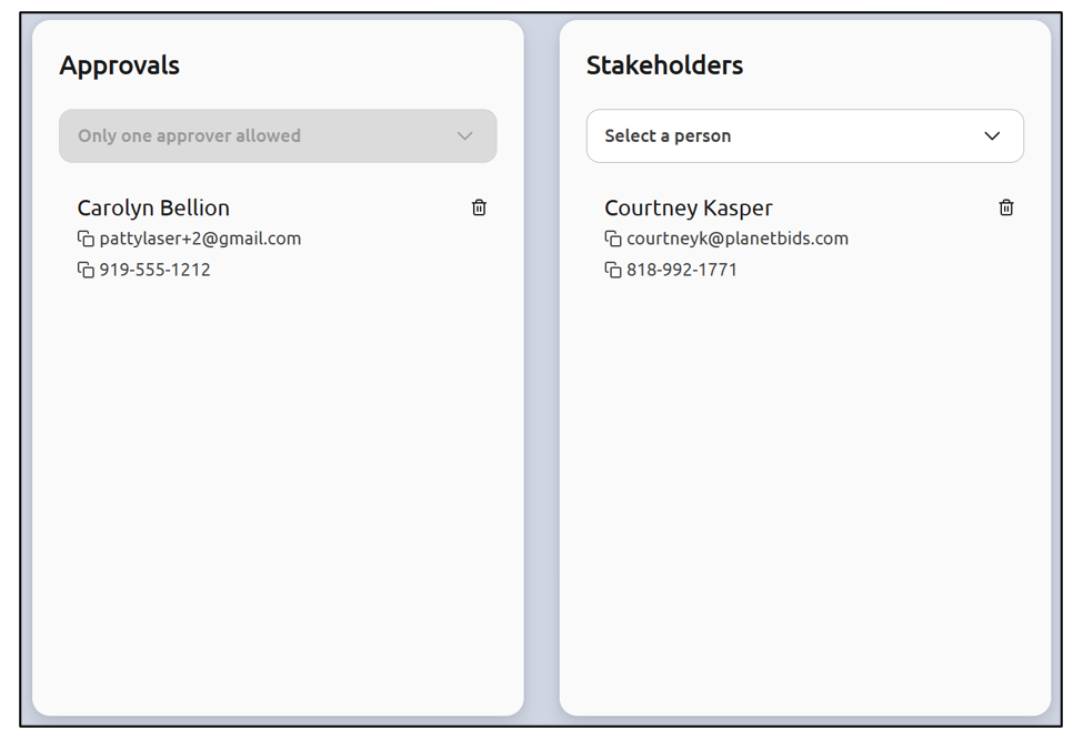 Note: There can only be one approver, but there is no limit on stakeholders.