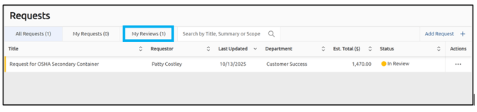 You will see a list of Requests, and you can search for a specific Request or view your pending reviews by clicking My Reviews: