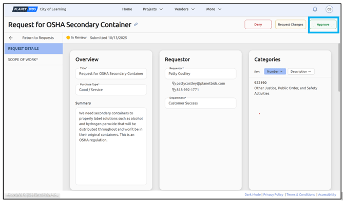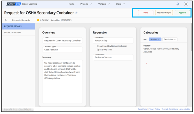 Here, you can Deny the Request, Request Changes to the Request, or Approve the Request: