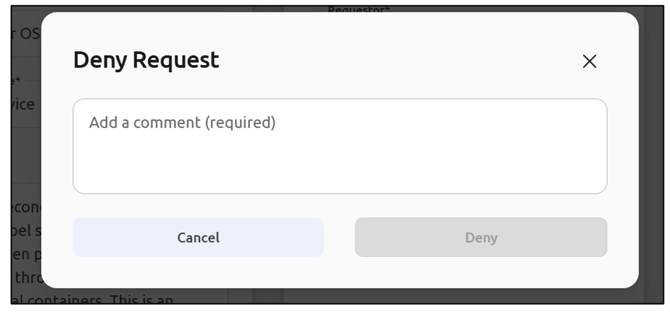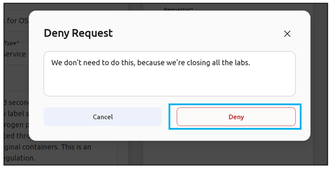 Once you’ve put your comment in, click Deny. The requester will receive an email informing them of the denial: