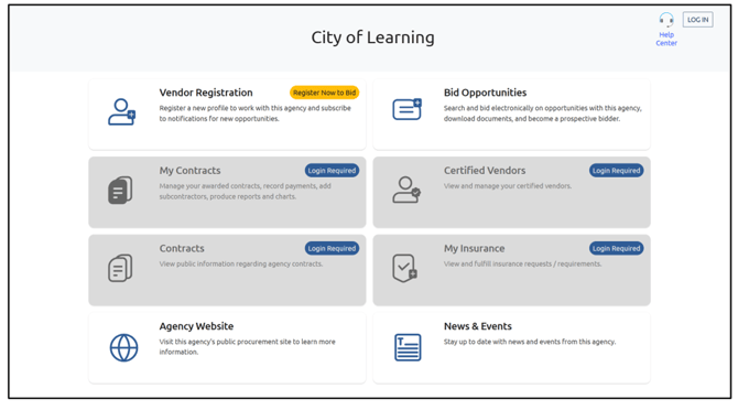 To register as a vendor with an agency, navigate to the agency’s Agency Portal Home Page: