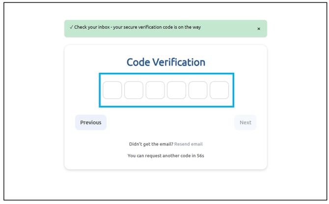 An email with a code will be sent to the email address you registered with to confirm and finish setting up your profile.