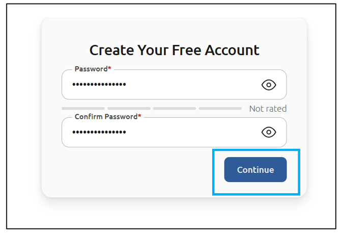 Continue creating your account by creating a strong password: