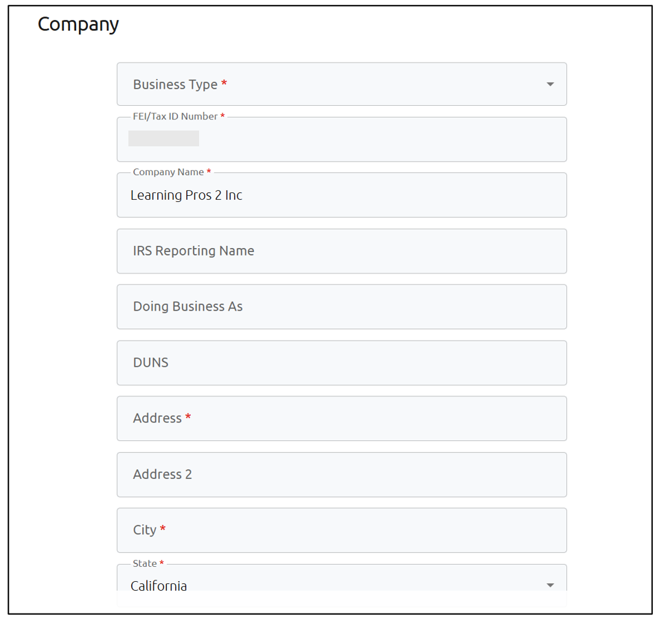 Note: FEI/Tax ID or Social Security Number must be 9 digits. International companies, please use the last 9 digits of your main phone number.