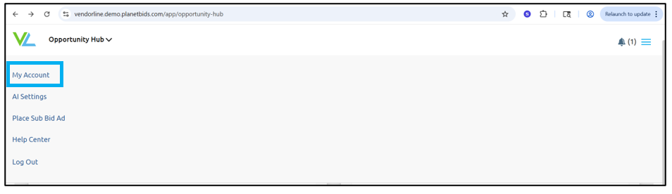 To update the payment method for your VendorLine account, click the menu in the upper right corner: